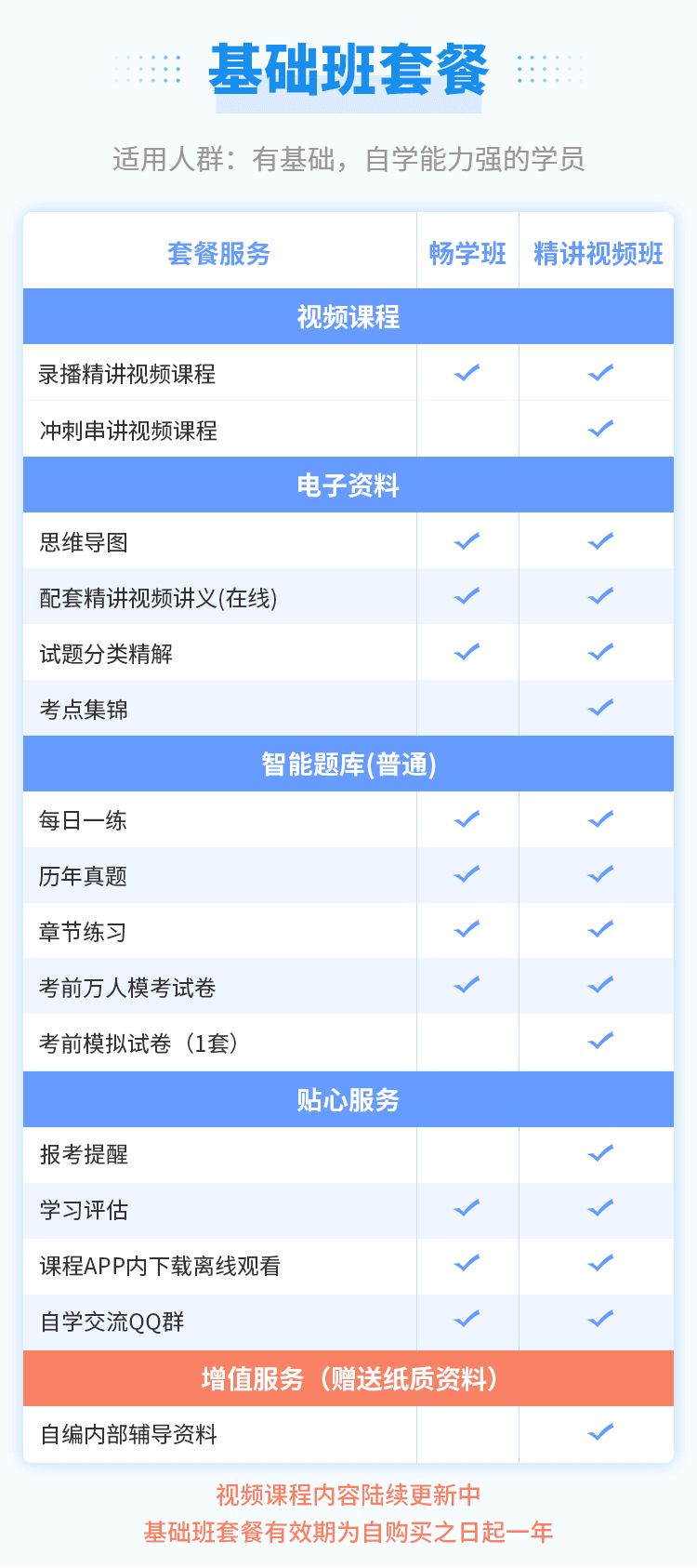 包含第3版教材精講視頻課程、考前資料、智能題庫、考前萬人??荚嚲怼㈦娮淤Y料、電腦+移動端便捷學習等。