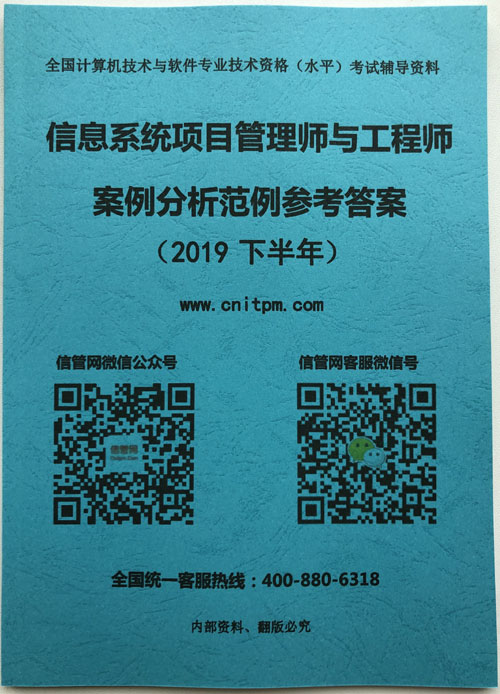 《信息系統(tǒng)項(xiàng)目管理師與工程師案例分析范例參考答案》(2019下半年)由信管網(wǎng)培訓(xùn)中心組編,提供給信管網(wǎng)信息系統(tǒng)項(xiàng)目管理師和系統(tǒng)集成項(xiàng)目管理工程師培訓(xùn)學(xué)員使用,包含《信息系統(tǒng)項(xiàng)目管理師輔導(dǎo)資料》第二部分案例分析部分范例的參考答案。
