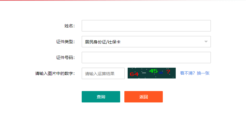 第四步:進(jìn)入準(zhǔn)考證打印頁(yè)面后,填寫(xiě)個(gè)人信息,輸入姓名,選擇證件類型,輸入證件號(hào)碼,輸入圖片中的運(yùn)算結(jié)果,最后點(diǎn)擊查詢即可。